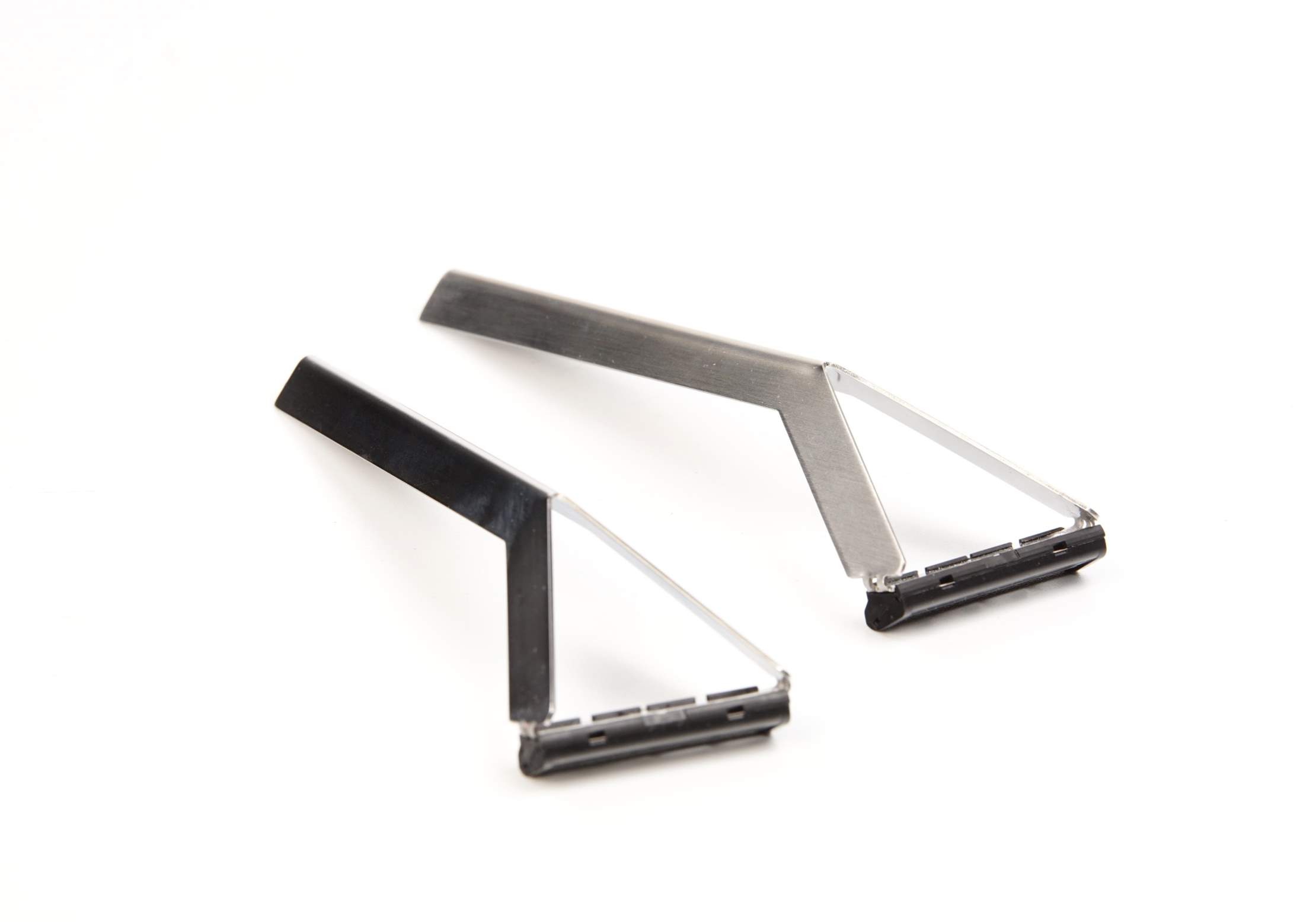 Ich entschied mich für einen äußerst simplen Entwurf, hergestellt aus einem gelaserten 0,8 mm Blech. Über drei Biegungen erhält der Rasierer seine endgültige Form, die über den Y-förmigen Verschluss zusammengehalten wird.